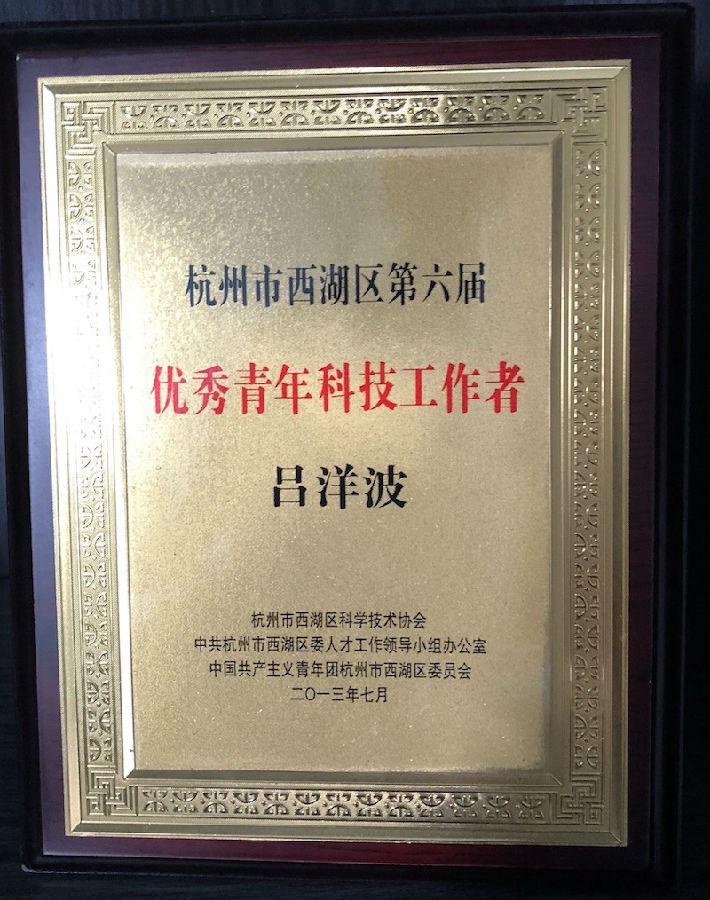 杭州市西湖區(qū)優(yōu)秀青年科技工作者。
